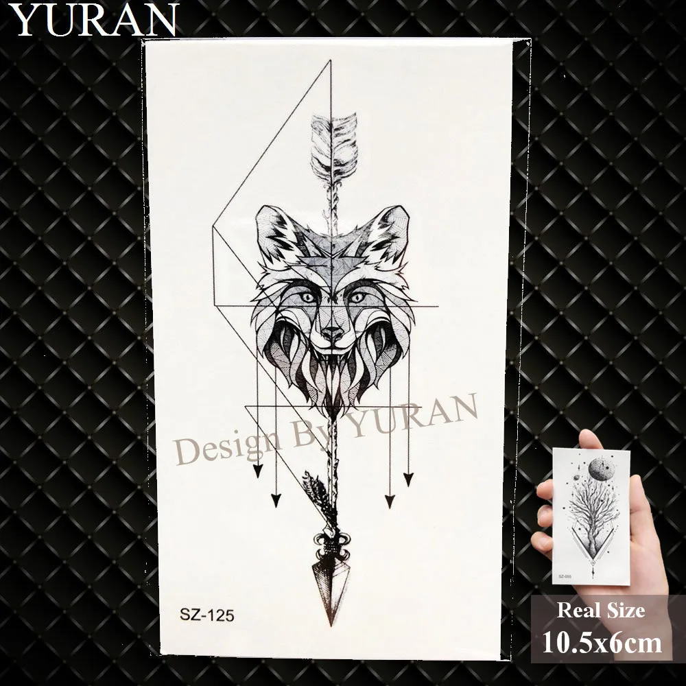 Yuran Black Mountain River Geometric Tattoo Stickers Women Body Arm Moon Temporary Tattoo Men Ankle Wolf Round Fake Tatoo 3d Are Temporary Tattoos