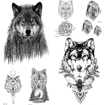 Amazon Com Forest Wolf Temporary Tattoo Men Geometric