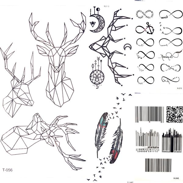 Geometric Black Moose Deer Cats Temporary Tattoo Men Body Arm Art Tattoo Stickers Women Moon Elk Waterproof Tattoo Hand Pendants