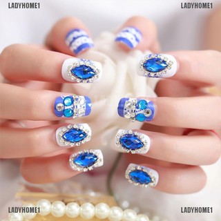 European Coffin False Nails Blue White Red Pre Designed Full Cover