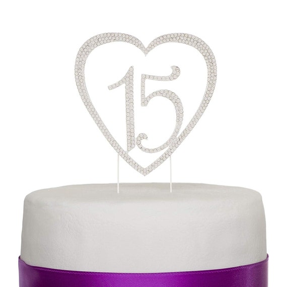 15 Heart Cake Topper Quinceanera 15th Birthday Anniversary Decoration Silver Crystal Rhinestone Metal Number Party Supplies And Ideas