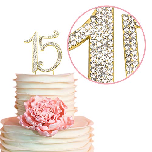15 Quinceanera Gold Birthday Cake Topper Premium Bling Crystal Rhinestone Diamond Gems 15th Birthday Or Anniversary Party Decoration Ideas